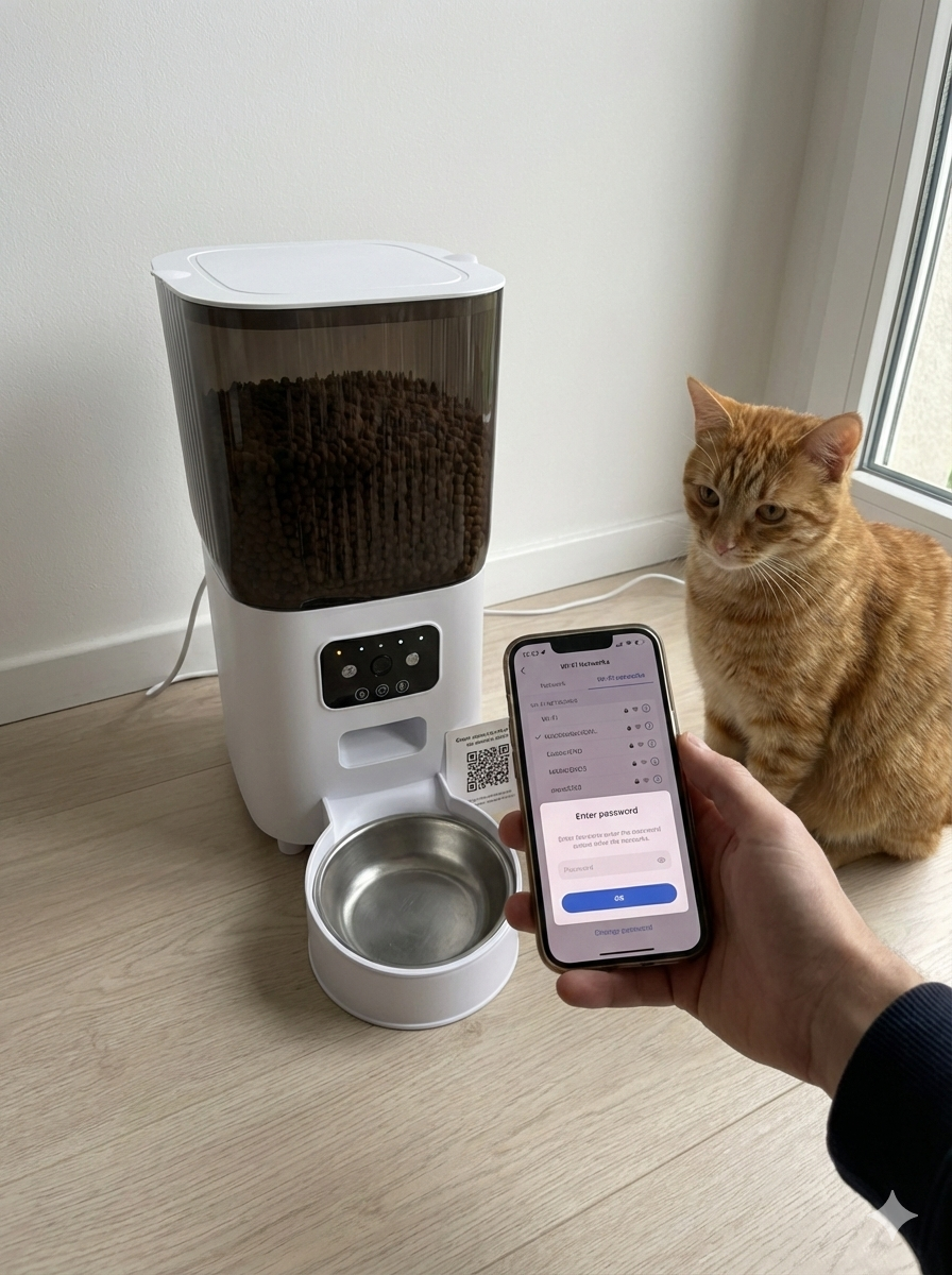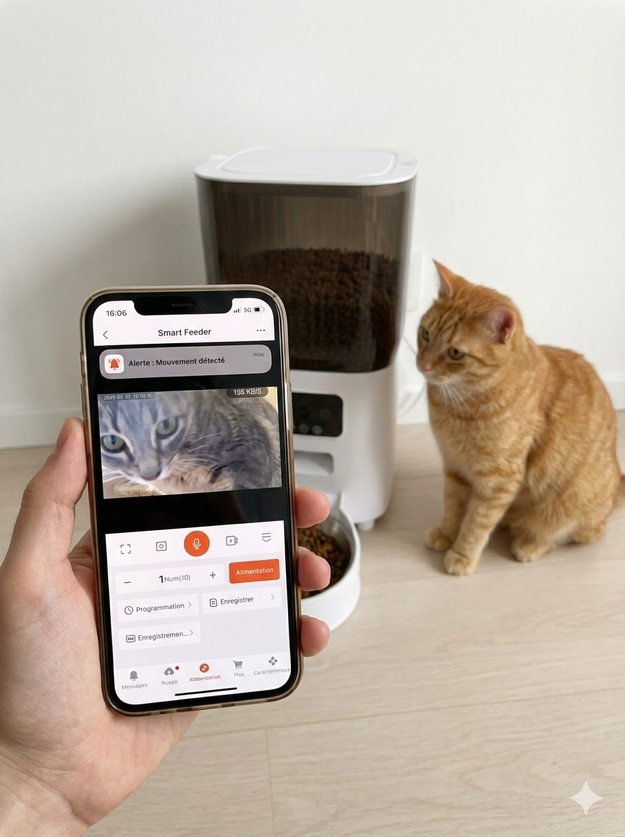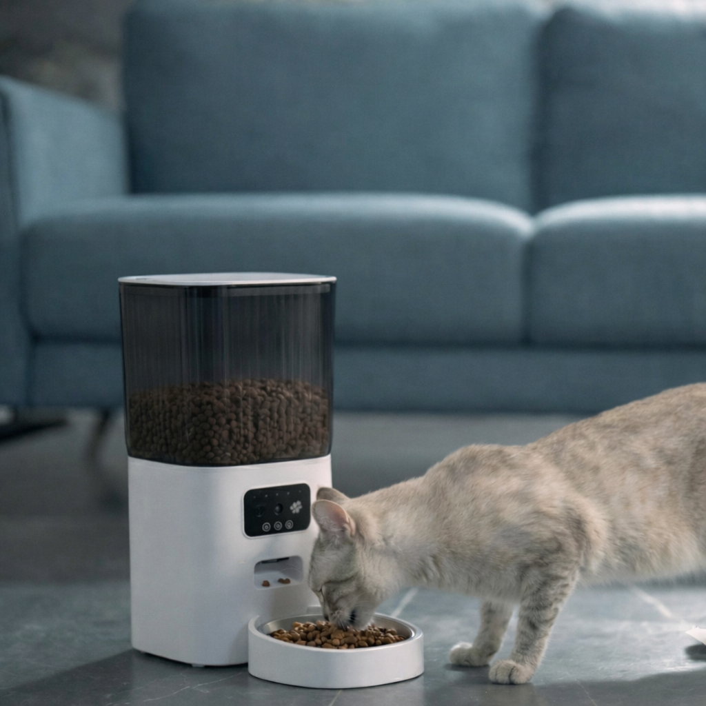 Remplissez le réservoir de croquettes, branchez l’appareil (ou insérez les piles de secours) et placez-le à l’endroit idéal.